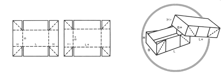 Deckelschachteln (Stülpschachteln) bestehen aus zwei oder mehr Teilen. Ein Oberteil (Deckel) wird über ein Unterteil (Boden) gestülpt oder beide über einen Rumpf.