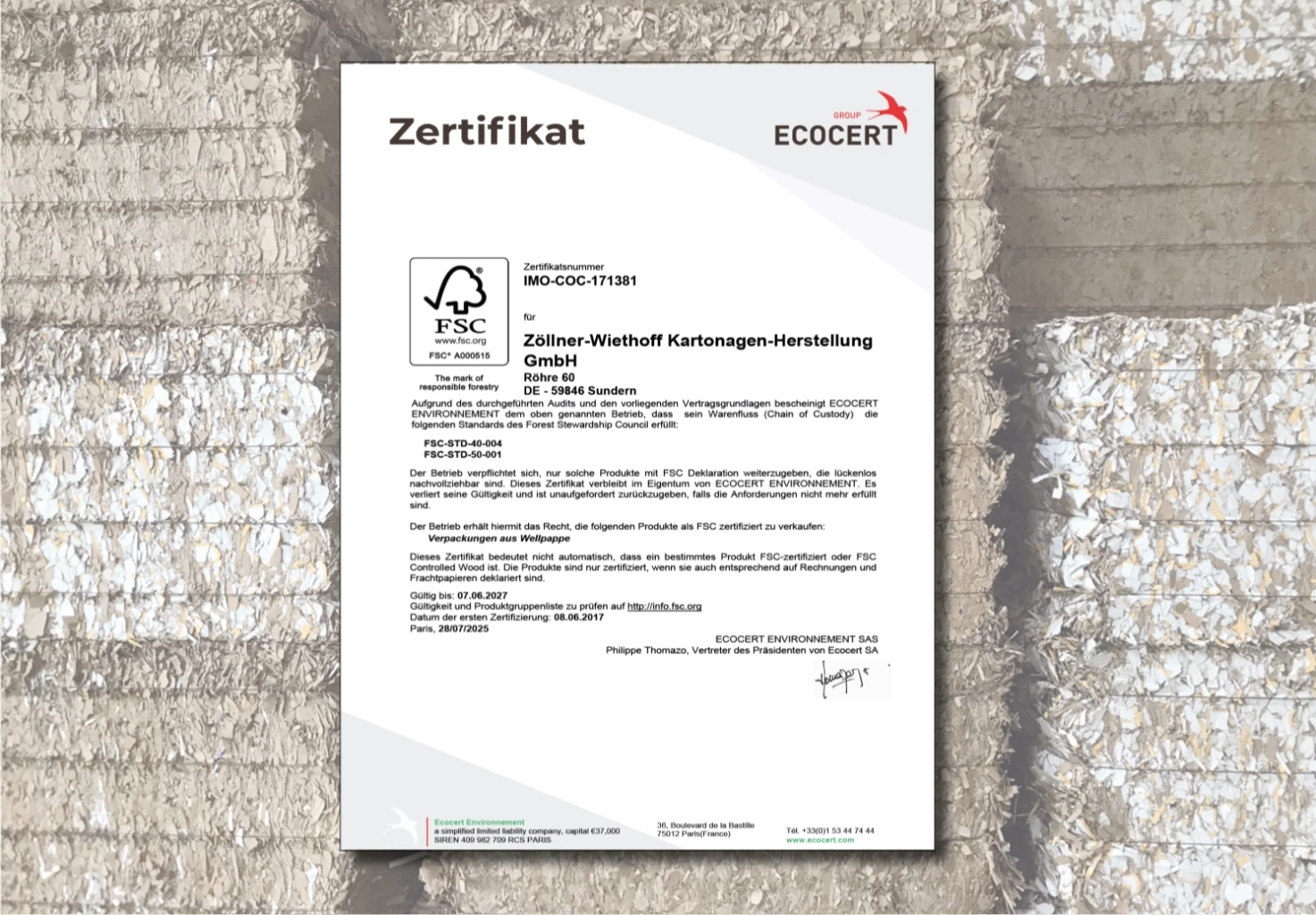 unser Zertifikat.